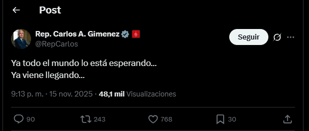 Un breve pero contundente mensaje publicado por el congresista republicano Carlos Giménez en su cuenta oficial de X, generó en sus seguidores, especulaciones sobre un posible giro decisivo en la crisis venezolana.